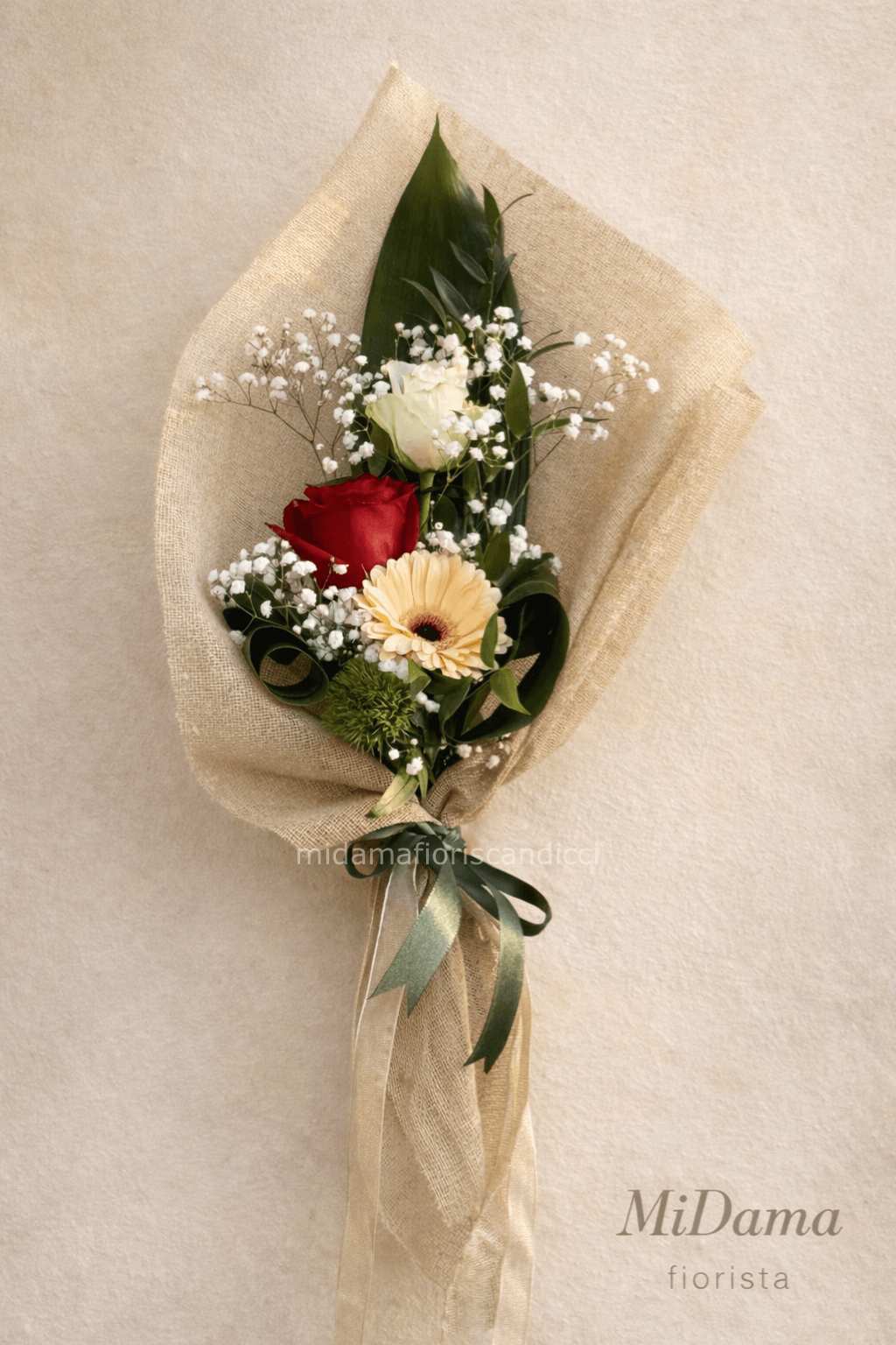 Un bouquet raccolto e armonioso, pensato per esprimere presenza e attenzione con naturalezza.